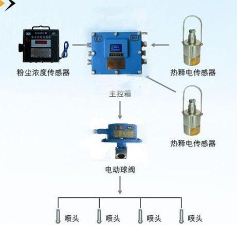 ZP127礦用自動(dòng)灑水降塵裝置(粉塵超限噴霧)主要由主控箱、電動(dòng)球閥、熱釋光控傳感器、粉塵濃度傳感器、遙控器、水幕等組成。